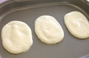 8. ホットプレートに軽く油をなじませ、楕円に生地をひろげ焼く。 厚みは1センチ程度にする。