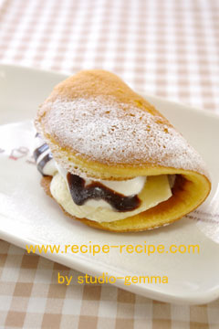 さらに生クリームやチョコレートを乗せ、半分に折ってできあがり。