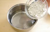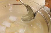 5. 型がない場合は、スプーンですくい氷水に落として冷やす。 (こちらの方がすぐに召し上がれます。) |