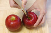 りんごを洗い、芯をくりぬきます。 |