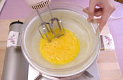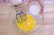 1. ボールに卵を割り入れミキサーの低速でほぐします。