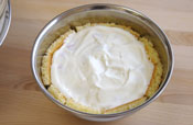 丸型にカットした生地をかぶせ冷蔵庫で冷やし固めます。