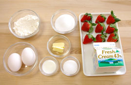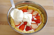 また生クリーム、イチゴをしきこみ、最後に生クリームをはじまて入れ込みます。 |