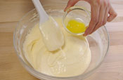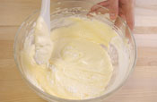 6. 粉をふるいにかけながら加え、サックリと混ぜ合わせます。 |