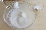 しっかり立ったら残りのグラニュー糖を入れ、さらに立てる。