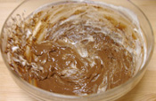 残りのメレンゲを入れ、やっとメレンゲの筋が見えなくなる程度まで混ぜ合わせる。