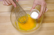 卵黄にグラニュー糖10gを入れホイッパーでまぜる。 |