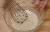 8. 6を一度まぜなおして、メレンゲの1/3を入れホイッパーで軽くまぜる。 |
