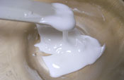 硬さを調節する。垂らしたときにやっと平らになるくらい。 |