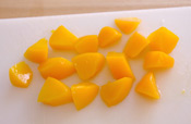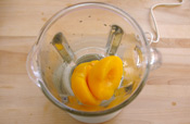 残りの桃3枚とシロップをミキサーに入れかける。 |