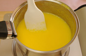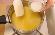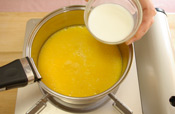 4をお鍋にあけ、牛乳を加えゴムべらでまぜる。