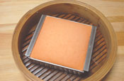 型にクッキングペーパーをしく。 蒸し器をあたためる。 |