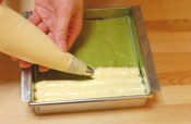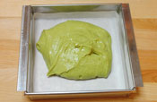 絞り袋に入れ、抹茶の生地の上に絞っていきます。