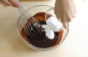 5. ココアを入れ混ぜる。 (だまがあるようならふるいながら入れる。) |
