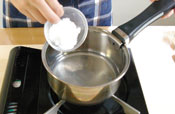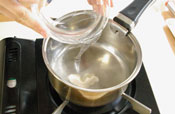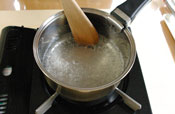 2. 沸騰して粉寒天が溶けたら上白糖を加えて溶かす。 |