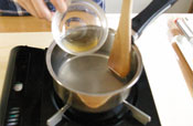 3. 上白糖が溶けたら火から下ろして梅酒を加える。 |