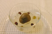 8. 冷えたシロップを注ぎ、梅の実や甘納豆をトッピングする。 |