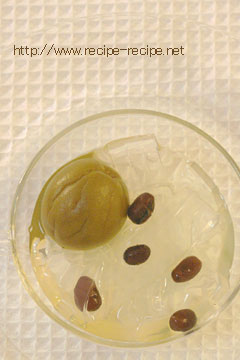 5. 梅酒シロップを作る。 水と上白糖を鍋に入れ火にかける。上白糖が溶けたら火を止め梅酒を加え冷やす。 |